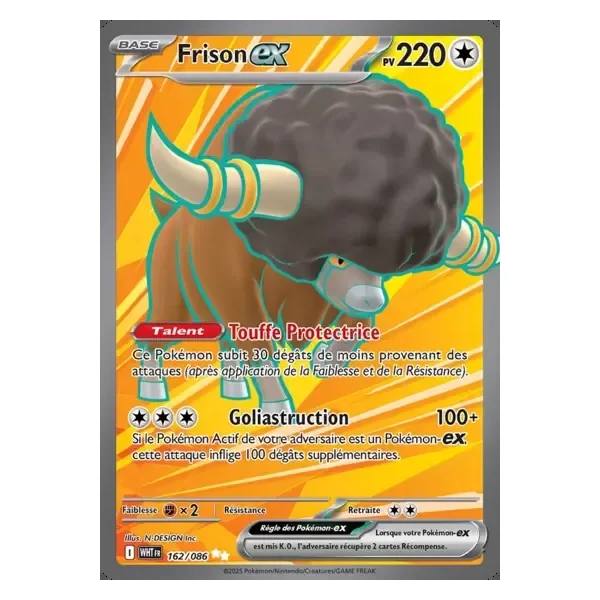 Découvrez Frison (wht162), une carte Pokémon de l’extension Flamme Blanche, provenant du bloc Écarlate & Violet. Idéale pour compléter votre collection, cette carte Ultra Rare plaira autant aux collectionneurs qu’aux joueurs.
