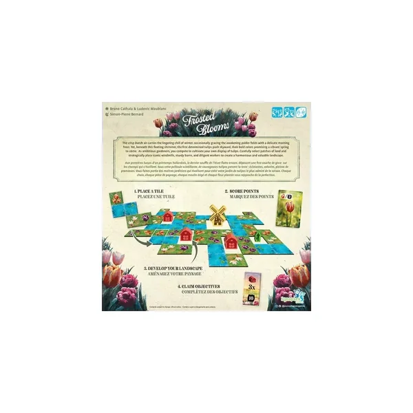 Dans Frosted Blooms, les joueurs rivalisent pour aménager le jardin de tulipes le plus harmonieux et le plus précieux au fil de 10 manches.