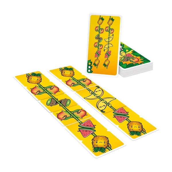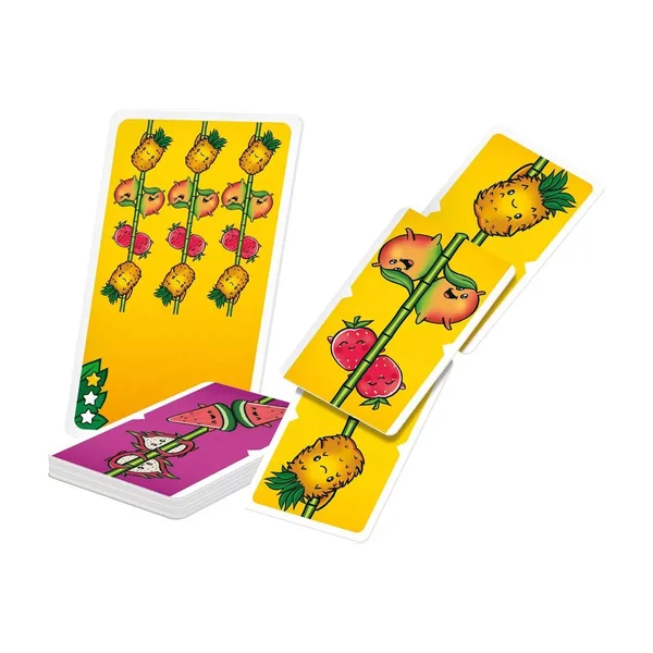 Reconstituez les cascades de fruits en tournant et en assemblant vos cartes aussi vite que possible ! Le premier qui obtient la configuration demandée remporte la carte.