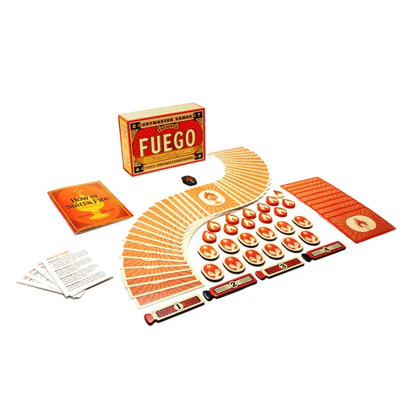 Fuego se joue en plusieurs manches où vous devez remporter des plis. Des coups de cartes malins et des attaques bien placées vous permettront de gagner des plis et de voler des jetons de Flamme à vos adversaires. Éteignez vos adversaires en leur prenant tous leurs jetons de Flamme ou possédez le plus de jetons à la fin de la manche pour l’emporter. Le premier joueur ou la première équipe à gagner deux manches remporte la partie !