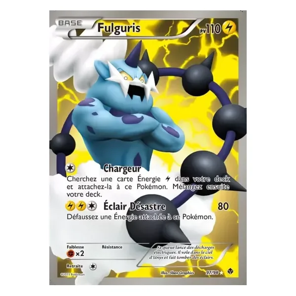 Découvrez Fulguris (epo097), une carte Pokémon de l’extension Pouvoirs Émergents, provenant du bloc Noir & Blanc. Idéale pour compléter votre collection, cette carte Ultra Rare plaira autant aux collectionneurs qu’aux joueurs.