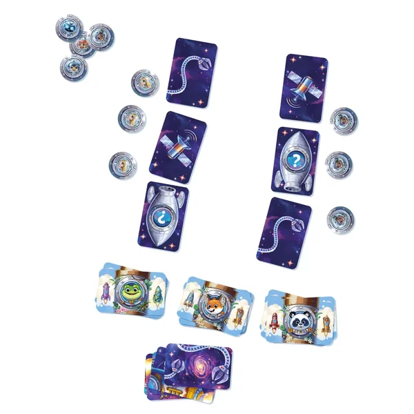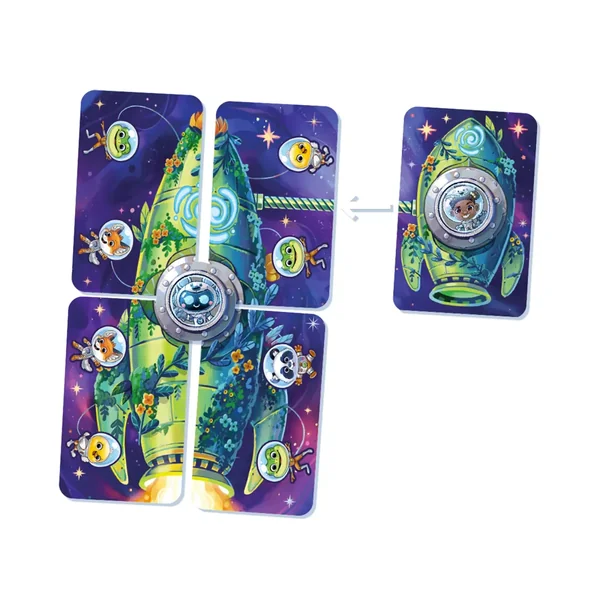 Pioche une carte animal et tente de la placer dans l’une de tes fusées. Si l’animal ne correspond pas à tes objectifs, donne-le à un autre joueur !
