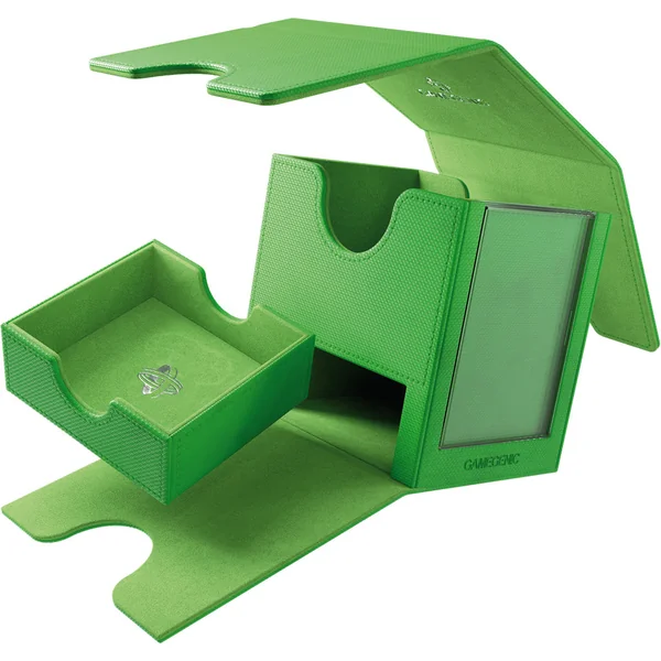 Gamegenic – Sidekick PRO 100+ XL Green comprend un étui à cartes à glissière pour présenter le Commander ou la carte supérieure avec une protection supplémentaire contre les UV. Grâce à l’emplacement innovant, le deck stocké peut être facilement identifié sans ouvrir la boîte. Le Slide Card Case peut également être détaché et utilisé pendant le jeu. Le tiroir intégré permet de ranger des jetons supplémentaires et d’autres accessoires.