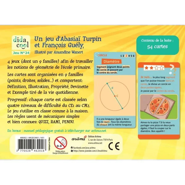 Géométriko contient : 62 cartes, 4 règles de jeu.