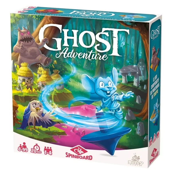 Ghost Adventure est un jeu coopératif qui se joue debout, autour d’une table sans chaise. Les joueurs se relaient pour réaliser ensemble des missions. Chaque mission représente un parcours différent qu’ils vont devoir effectuer avec une toupie à travers plusieurs plateaux. Ils représentent 8 mondes et de nombreuses cibles à atteindre. Au début de chaque mission, les joueurs identifient ensemble les cibles et se répartissent les plateaux indiqués.