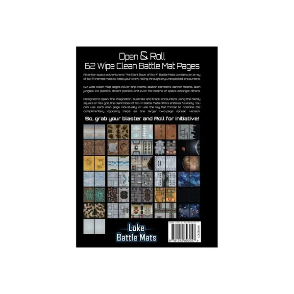 Le Giant Book of Sci Fi Battle Mats est une collection de 62 pages au format A3 de surfaces de jeu regroupées en un seul volume (reliure spirale).
