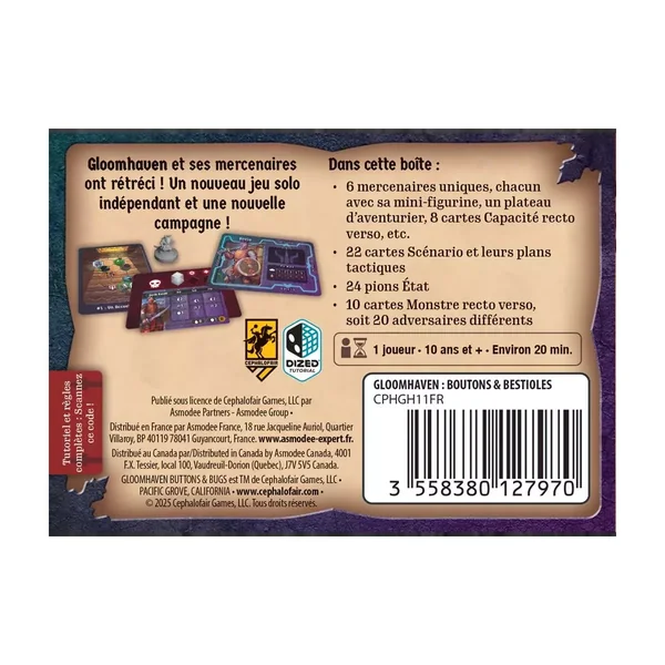 Gloomhaven Boutons & Bestioles est un jeu de société jouable en solo, dès 10 ans pour des parties d’environ 20 minutes, édité par Cephalofair Games.