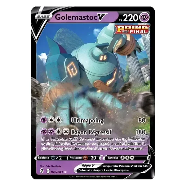 Découvrez Golemastoc (evs070), une carte Pokémon de l’extension Évolution Céleste, provenant du bloc Épée & Bouclier. Idéale pour compléter votre collection, cette carte Ultra Rare plaira autant aux collectionneurs qu’aux joueurs.