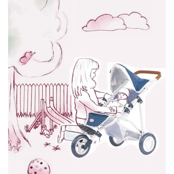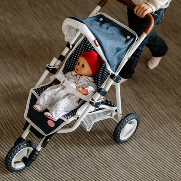 Cette poussette stylée pour poupées au look denim est notre plus petit modèle de la gamme de poussettes sportives. Elle dispose d’un auvent et d’une poignée douce, ce qui la rend facile à pousser. Vous y trouverez également un panier de courses en filet, permettant aux mamans et papas de poupées de ranger facilement toutes leurs affaires. Il suffit de placer votre poupée dans la poussette et vous pouvez partir. Elle se plie et se déplie facilement.