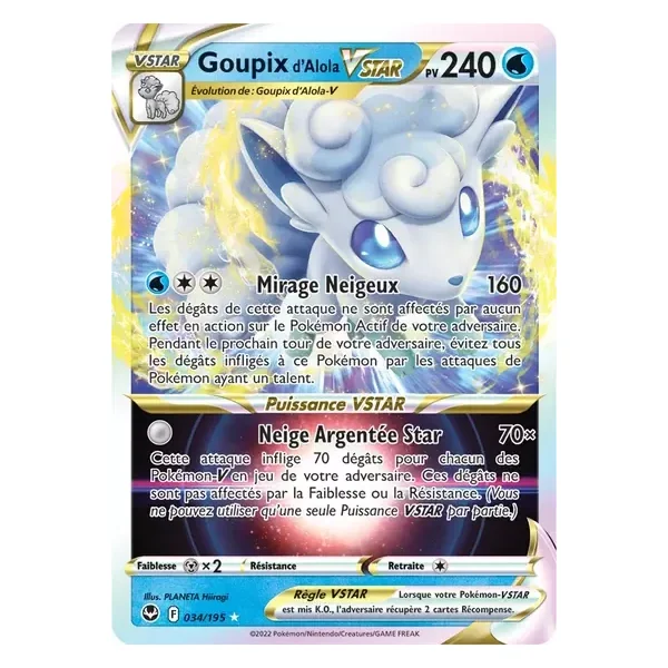 Découvrez Goupix de Alola (sit034), une carte Pokémon de l’extension Tempête Argentée, provenant du bloc Épée & Bouclier. Idéale pour compléter votre collection, cette carte Ultra Rare plaira autant aux collectionneurs qu’aux joueurs.