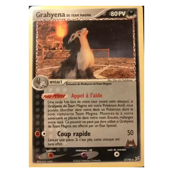 Découvrez Grahyena de Team Magma (ma037), une carte Pokémon de l’extension Team Magma vs Team Aqua, provenant du bloc Ex. Idéale pour compléter votre collection, cette carte Peu Commune plaira autant aux collectionneurs qu’aux joueurs.