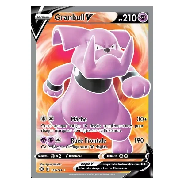 Découvrez Granbull (brs159), une carte Pokémon de l’extension Stars Étincelantes, provenant du bloc Épée & Bouclier. Idéale pour compléter votre collection, cette carte Ultra Rare plaira autant aux collectionneurs qu’aux joueurs.