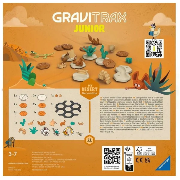 Votre enfant thématise ses circuits et plonge dans un monde magique et coloré GraviTrax ! Plongez au cœur du désert avec ce Set d’extension Désert de 33 pièces ! Une recharge pour explorer les dunes de sable chaud, découvrir le paysage et les animaux désertiques !