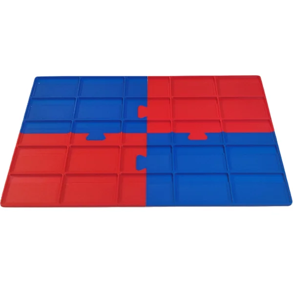 Une fois la manche terminé, il vous suffit simplement de pousser le haut de la carte pour la soulever pour recommencer une nouvelle manche. Cette grille est composée de quatre parties (deux rouges et deux bleues) pour se ranger facilement dans la boîte du jeu.