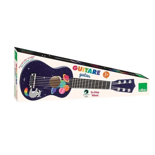 Sans avoir la prétention d’être un instrument de musique aux notes parfaitement ajustées, cette guitare-jouet très poétique illustrée par l’artiste Andy Westface est adaptée pour les enfants dès 3 ans afin qu’ils fassent comme les grands.