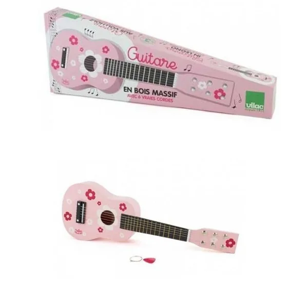 Avec cette guitare en bois décorée de fleurs, les enfants pourront imiter les plus grands guitaristes et improviser de jolis morceaux.