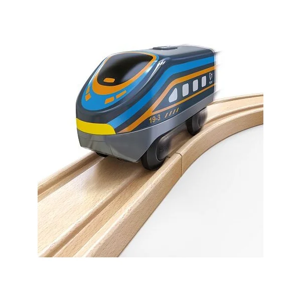 Cette locomotive interurbaine à batterie emmène les enfants pour leur premier voyage en train. L’interrupteur sur le dessus contrôle la locomotive en avant et en arrière. Idéale pour stimuler l’imagination et le jeu de rôle, ainsi que pour le développement de la motricité fine et de la concentration.