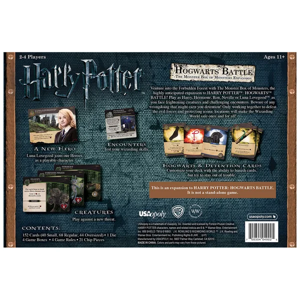 Plongez dans une aventure palpitante avec Harry Potter : Hogwarts Battle – L’Extension La Boîte des Monstres. Cet ajout indispensable à votre jeu HARRY POTTER : HOGWARTS BATTLE vous invite à explorer l’inquiétante Forêt Interdite. Rejoignez Harry, Hermione, Ron, Neville ou Luna Lovegood et affrontez des créatures terrifiantes ainsi que des défis exigeants dans cette extension immersive. Grâce au travail d’équipe et au courage, défendez des lieux emblématiques du Monde des Sorciers et rétablissez enfin la paix. Préparez vos baguettes, rassemblez vos alliés et plongez encore plus profondément dans la magie et les mystères du monde magique.