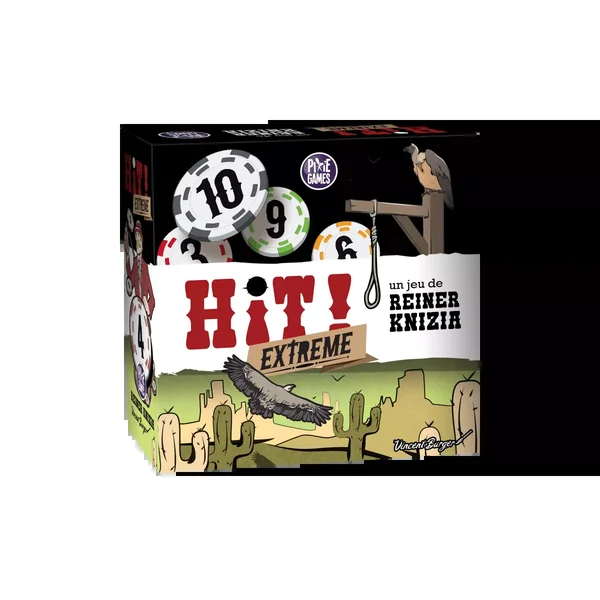 Hit ! Extreme est une version augmentée de HIT. Hit Extreme est un jeu de Stop ou Encore dans lequel vous devez piocher des cartes pour obtenir des points de victoire. Il se joue de 2 à 5 joueurs, dès 8 ans, pour des parties de 15 minutes environ, édité par Pixie Games.