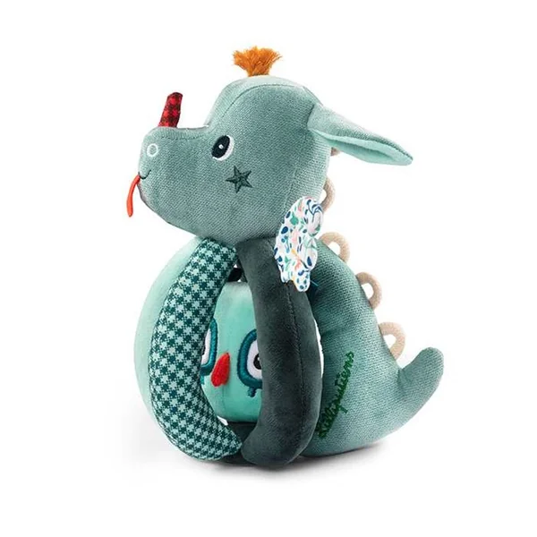 Un hochet original, que les petites mains saisissent facilement. Joe le dragon cache un petit ami entre ses poignées.