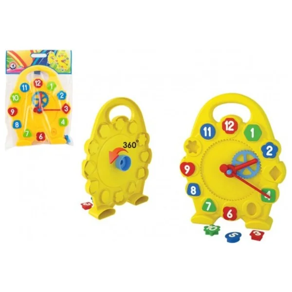 L’enfant découvre de manière ludique la reconnaissance des heures, grâce à la rotation mécanique de la grande aiguille, qui fait tourner la petite aiguille à l’aide d’un rouage.