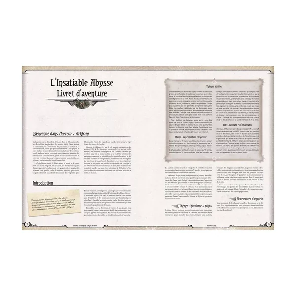 L’Insatiable Abysse pour Horreur à Arkham : Le Jeu de Rôle contient une campagne en 10 chapitres de 1 à 2 heures chacun.