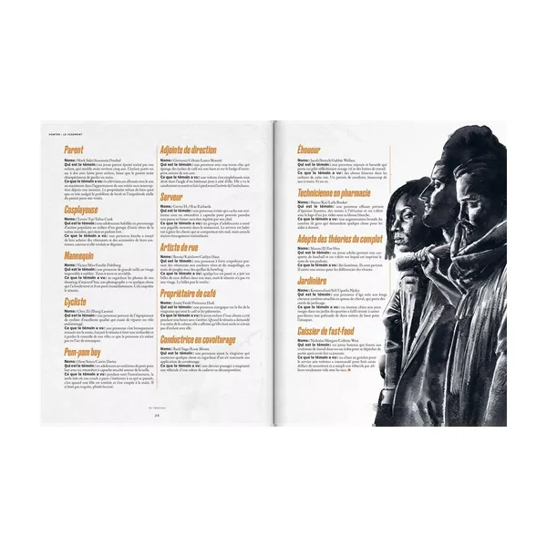 Les outils du conteur regorgent de conseils de règles supplémentaires couvrant de nombreuses situations (qu’il s’agisse d’enquête ou de combat) et proposent une liste de témoins ainsi qu’une histoire complète que vous pouvez utiliser lors d’une ou plusieurs sessions de jeu.