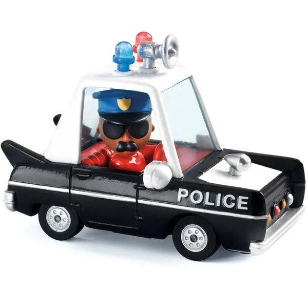 On entend au loin sa puissante sirène et l’on aperçoit ses gyrophares. Vite, tout le monde se pousse, Hurry Police est à la poursuite des méchants !
