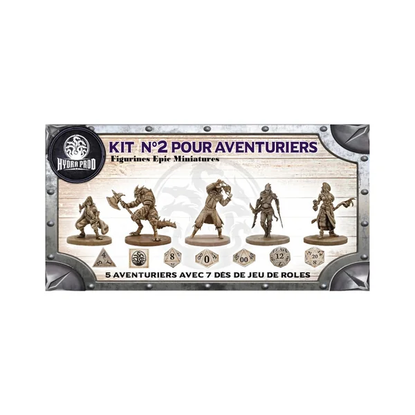 Dans cette boîte, vous trouverez de quoi assembler 5 Aventuriers ainsi que 7 dés pour le Jeu De Rôles. Ces figurines sont compatibles avec tous systèmes de jeu utilisant des figurines 28-32 mm comme par exemple Dungeons & Dragons. La photo est là uniquement pour l’exemple, les pièces fournies peuvent varier de manière aléatoire d’une boite à une autre.