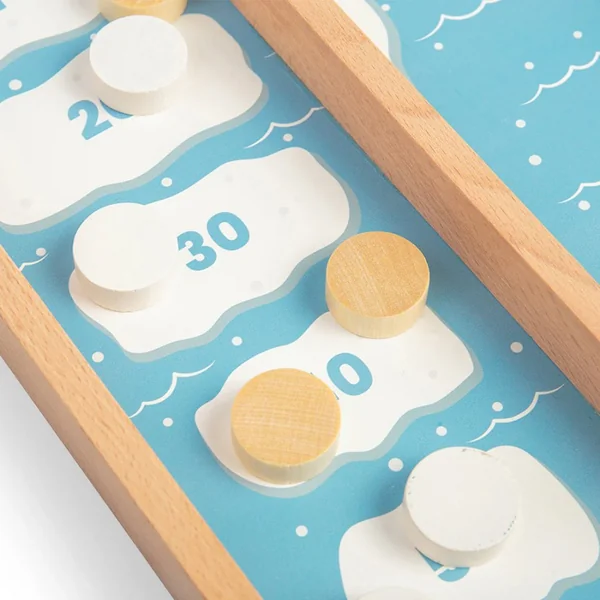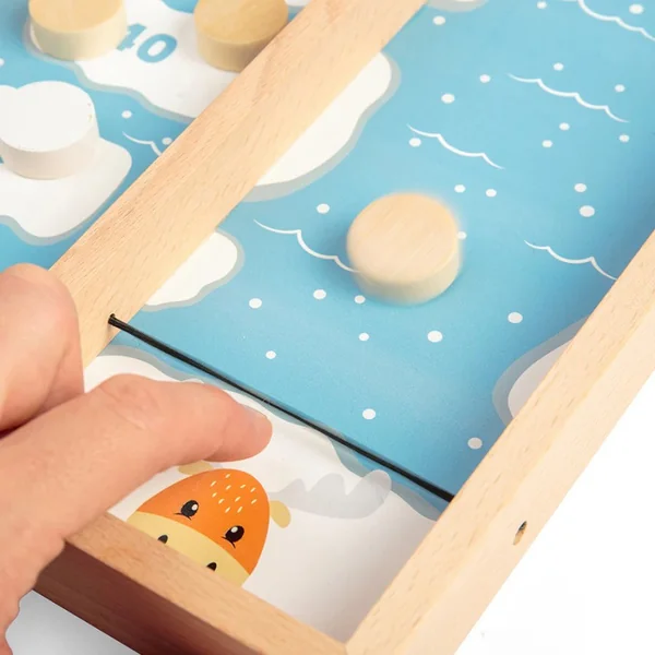 Divisez les pions et affrontez-vous en utilisant la corde élastique pour envoyer un ping aux pions de l’autre côté du plateau. Le gagnant est le joueur qui obtient le score le plus élevé à la fin de la partie. Améliore le développement de la motricité fine et les capacités de résolution de problèmes des enfants .