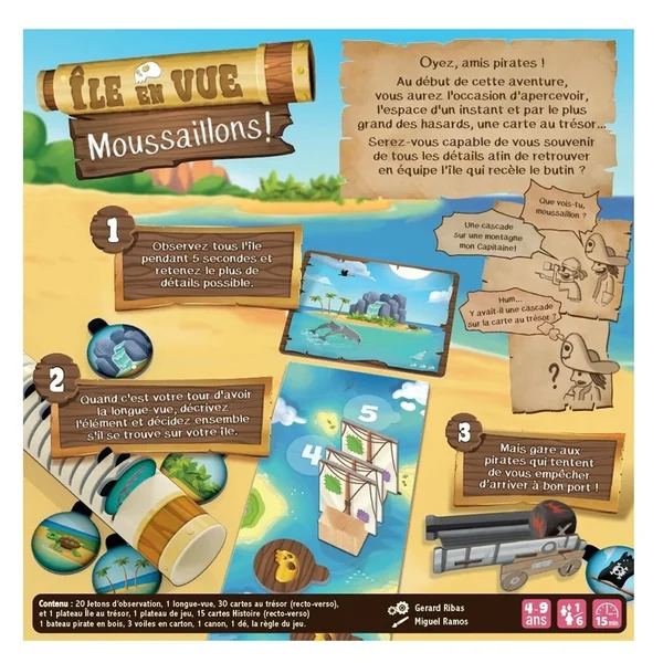 Passez-vous ensuite tour à tour la longue-vue pour décrire ce que vous y voyez, mais attention aux attaques des pirates ! Parmi toutes ces îles une seule cache le butin.