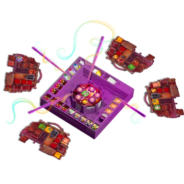 À l’aide de vos baguettes magiques, pointez simultanément l’un des jetons de la salle de la tour pour le récupérer. Si deux joueurs pointent le même objet, celui qui a la baguette la plus puissante gagne l’objet mais doit échanger sa baguette avec le perdant. Seules certaines combinaisons vous permettront d’accéder aux potions mystérieuses et aux grimoires magiques.