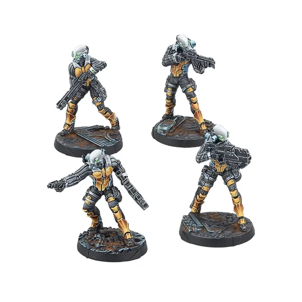 Kuang Shi était le nom donné aux zombies sans âme dans le sud de la Chine. L’incarnation actuelle des Kuang Shi est assez similaire : des prisonniers politiques ou récidivistes soumis à un processus de lavage de cerveau profond et condamnés à une peine de mort différée qui est très utile au système. Les spécialistes judiciaires les transforment en soldats résolus, capables de sacrifier leur vie pour celui qu’ils méprisaient autrefois le plus, l’Empereur. Cette boîte contient 4 figurines en métal :