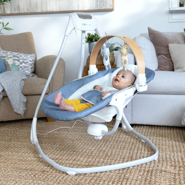Amusez votre enfant avec le balancement compact Ingenuity SimpleComfort – Chambray.