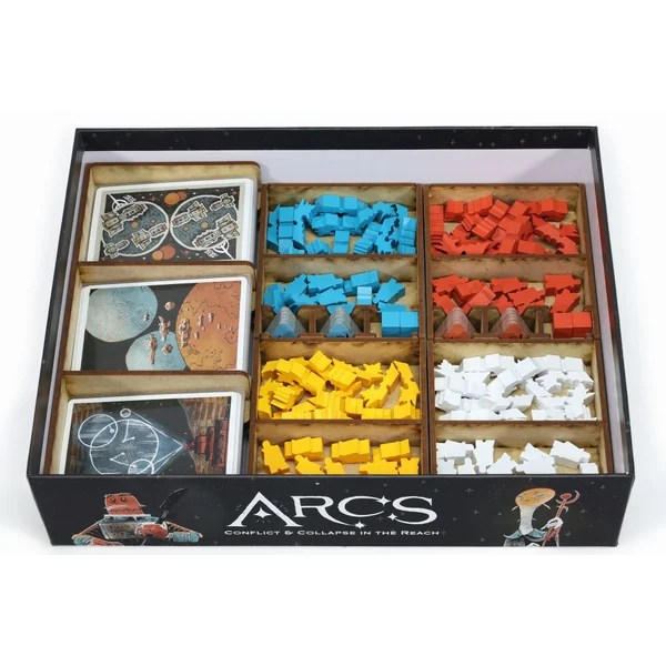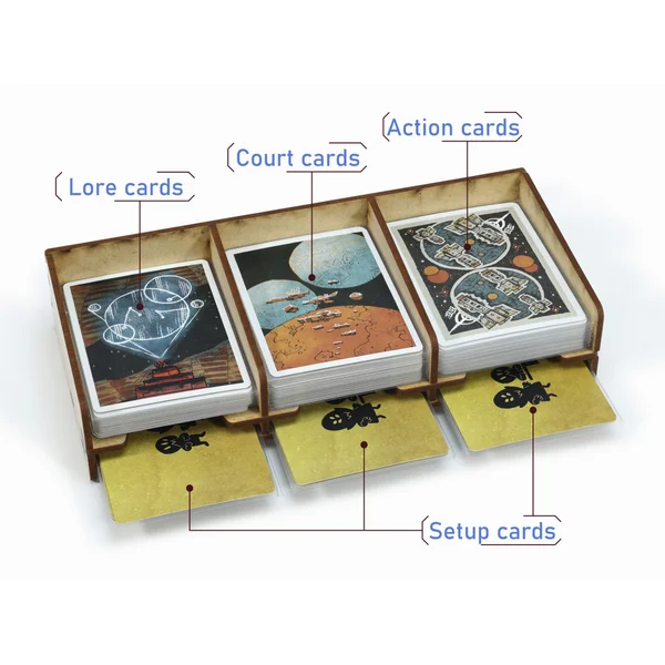 L’insert est livré assemblé et prêt à l’emploi. Il s’insère dans la boîte de base du jeu et améliorera considérablement les temps de montage et de démontage. Gardez vos cartes et vos jetons organisés dans la boîte et sur la table. Supporte les sleeves (jusqu’à 100 microns). Peut être rangé horizontalement ou verticalement.