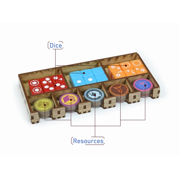 • Plateau des ressources et des dés.