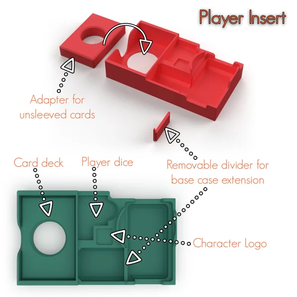 Conçu suite à vos retours, cet insert en plastique sur mesure optimise votre boîte de jeu avec un rangement parfaitement adapté à chaque héros tout en ajoutant une touche esthétique unique.
