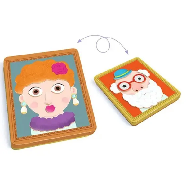 - Un jeu amusant de reproduction d’image selon les modèles avec des magnets sur le thème des portraits rigolos !