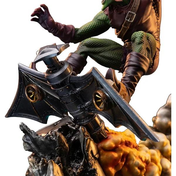 Cette figurine recrée avec précision l’apparence terrifiante du méchant, de son armure écailleuse émeraude à ses gadgets sinistres dans son sac à malice. La base conçue comme des débris de laboratoire ajoute de la profondeur à l’ensemble et raconte l’histoire de la rivalité légendaire. Grâce à l’exposition à un sérum spécial, Osborn a acquis une force surhumaine, une vitesse et une régénération, faisant de lui un adversaire impitoyable et rusé dans tout l’univers Marvel.