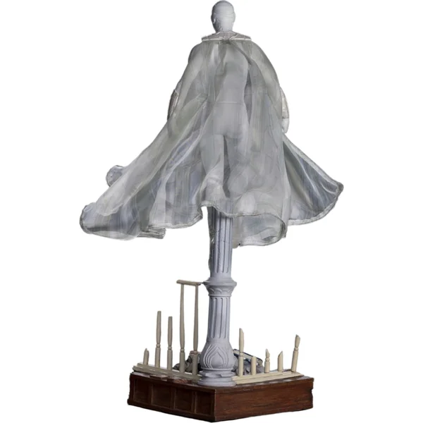 La figurine White Vision – WandaVision – BDS Art Scale 1/10 de Iron Studios représente le synthézoïde Vision dans sa nouvelle forme entièrement blanche – une entité humanoïde éthérée, créée artificiellement, flottant au-dessus d’une scène détruite avec les poings serrés, prête au combat. La figurine repose sur une base représentant des débris et des livres sur un parquet en bois d’une vieille bibliothèque dans la ville de Westview, inspirée par l’épisode final « The Series Finale » de la série Disney+ WandaVision. Dans le MCU, le personnage est interprété par l’acteur Paul Bettany.
