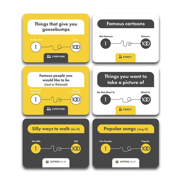 L’astuce consiste à faire en sorte que tout le monde comprenne vos intentions uniquement grâce aux indices basés sur le thème. Est-ce que vous et vos amis partagez la même vision du monde ? Amusez-vous à le découvrir dans ce jeu d’ambiance palpitant !