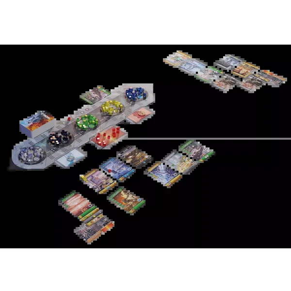 Pour cela, IWW mêle deux mécaniques, une très répandue de nos jours (la draft) et une autre plus rare mais diablement efficace (la construction de moteur). En résumé, vous sélectionnez des cartes (représentant des bâtiments, des véhicules, des projets scientifiques, financiers ou archéologiques), puis leur construction vous permettra de produire davantage de ressources et ainsi de mener à bien plus de projets, synonymes de plus de points de victoire.
