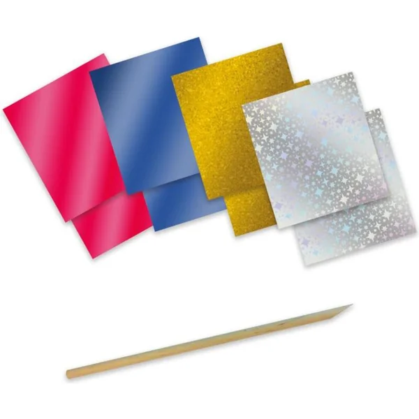 - 3 planches autocollantes, 8 feuilles métalliques, 1 outil en bois.