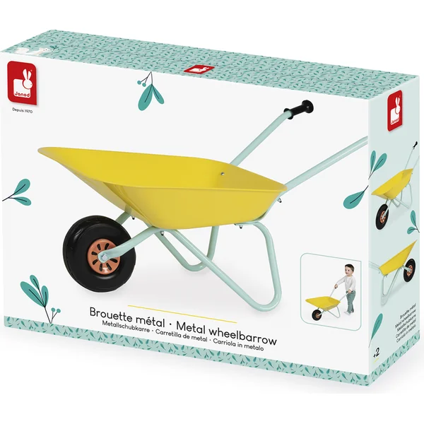 Cette jolie brouette en métal avec des roues en plastique et deux pieds latéraux est stable, robuste et légère. Ses poignées en caoutchouc offrent une bonne prise même pour les plus jeunes enfants. Cette brouette ravira les jardiniers en herbe en les encourageant à explorer l’extérieur et à profiter des joies de la nature. Jouet en métal.