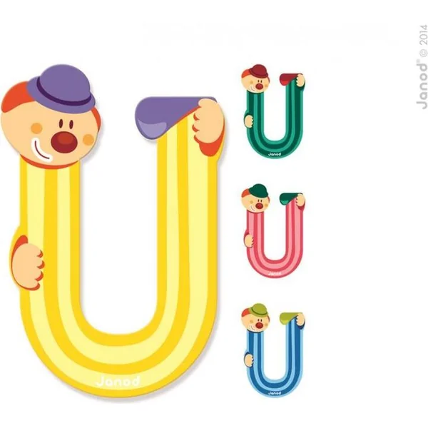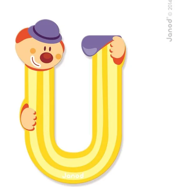 Lettre en bois U Janod avec autocollant, belle décoration pour une porte ou un mur. Choisissez la lettre Y Clown parmi 4 couleurs : jaune, vert, rose, bleu et indiquez votre choix dans la commande. Le prix indiqué est pour 1 pièce.