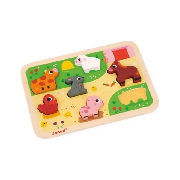 Janod Puzzle en bois à encastrer pour les tout-petits Ferme Chunky