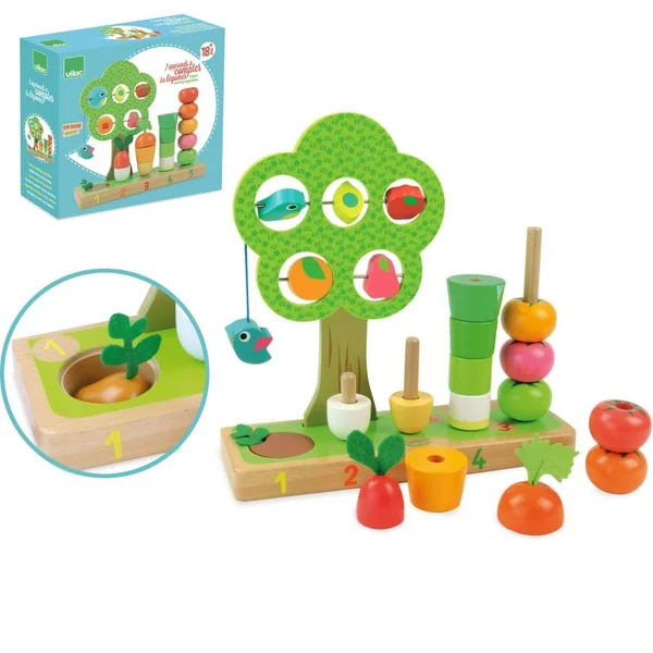 Jeu d’éveil idéal pour apprendre à compter en s’amusant avec de jolis légumes à empiler… et une pomme de terre à déterrer !