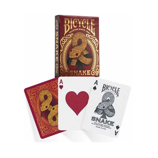 Faites preuve de sagesse et d’intelligence pendant l’année du Serpent avec les cartes à jouer Bicycle Snake ! Ces cartes personnalisées, habillées d’un kimono, apporteront une touche unique à votre prochaine partie ; et le serpent doré brillant sur l’étui est prêt à frapper. Célébrez le zodiaque chinois avec l’année du Serpent pour la première fois depuis 2013. Information : Attention, présence de petits éléments, risque d’étouffement. Ne convient pas aux enfants de moins de 36 mois. FAQ