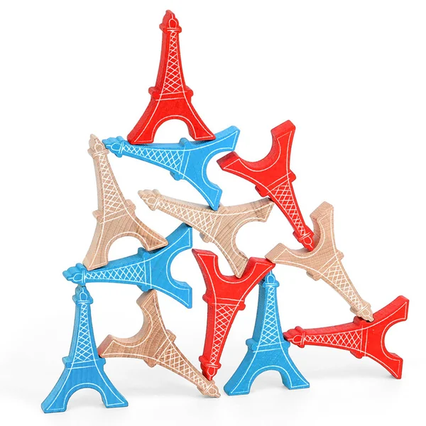 - 12 silhouettes de Tour Eiffel en bois massif : 4 bleues, 4 rouges, 4 en bois naturel