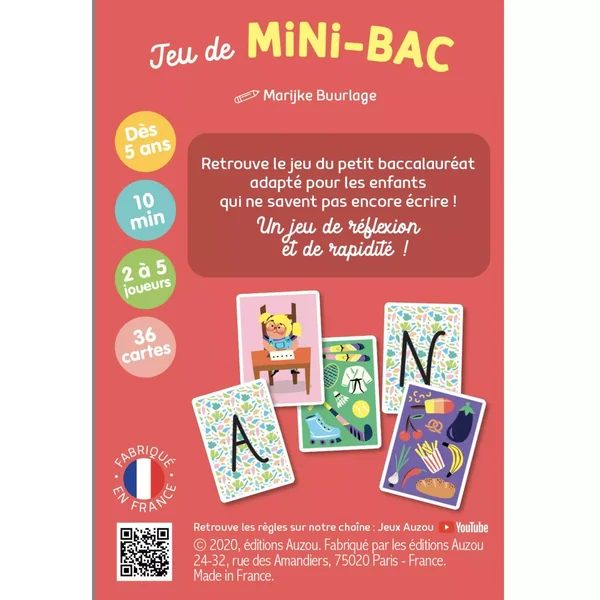 Une adaptation du petit baccalauréat en jeu de cartes pour les enfants qui ne savent pas encore écrire. Simple et rapide !